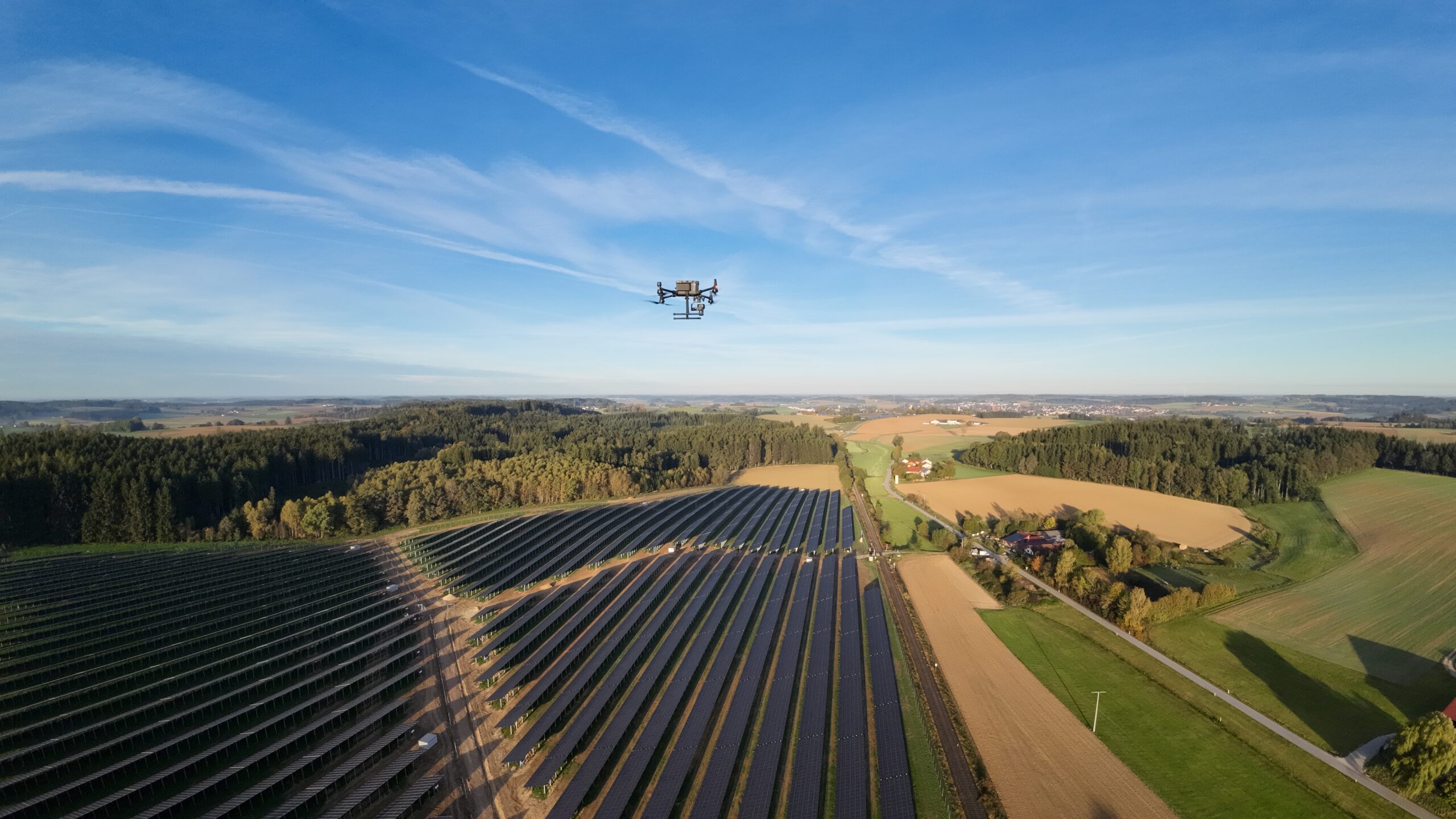 Vorprogrammiert und autonom fliegt die Drohne Bahn für Bahn des PV-Parks ab. Ein Bodenradar sorgt dafür, dass die Drohne immer den gleichen Abstand zum Boden hat – die Flughöhe wird dem Gelände also laufen angepasst. Das ist wichtig, dass alle DIN-Normen für die Inspektion eingehalten werden und ein ordentlicher Inspektionsbericht der PV Anlage erstellt werden kann.