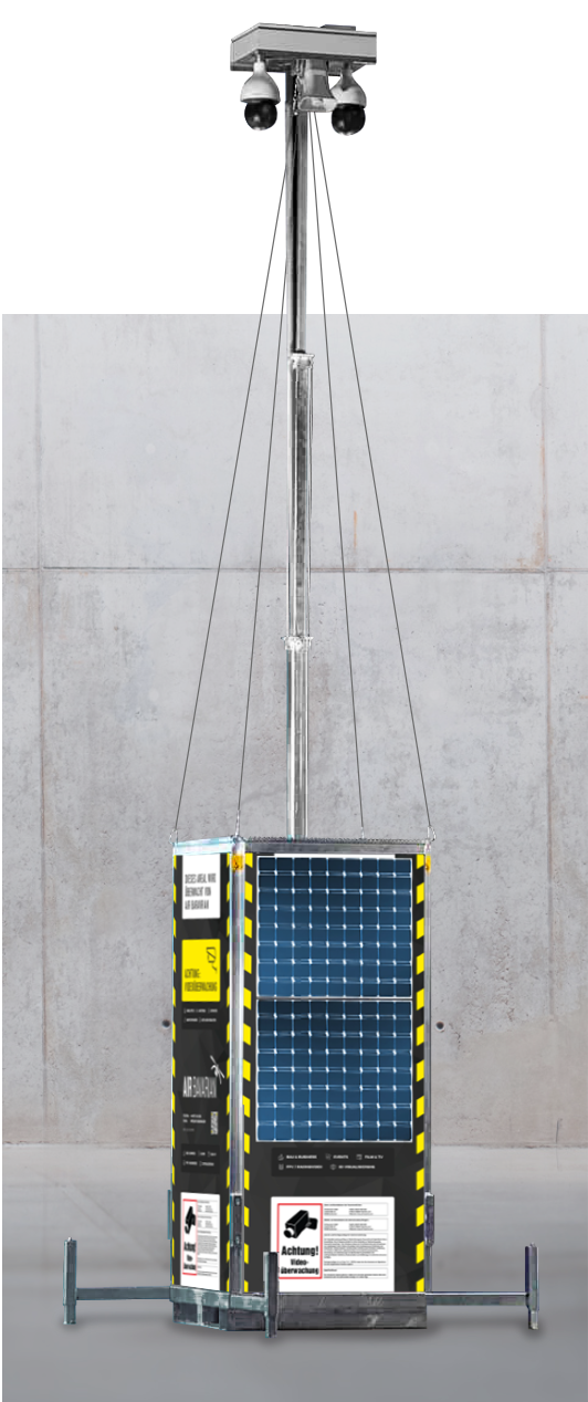 Schon ab 405€ im Monat: Unsere 4k-Baustellenüberwachung mit Infrarot-Sensoren, Notstrombatterie, Bildspeicher und 5G-Chip Spezial-Stahlschrank:
